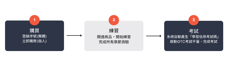 競賽方式:於MOSME【認證專區】登錄產品序號,完成試題列表所有章節測驗後,獲得學習信用考試碼後,啟動GTC全民科技力診斷平臺考試。